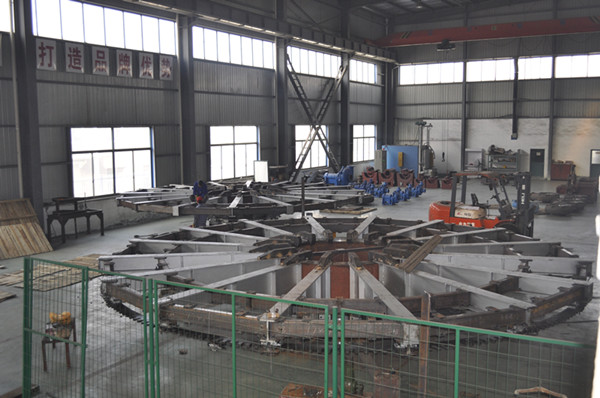 近期,我公司為池州冠華黃金有限公司制作的定量式圓盤澆鑄機(jī)正在廠內(nèi)試組裝,該設(shè)備將自動(dòng)化控制技術(shù)和機(jī)械制造技術(shù)完美結(jié)合,能夠?qū)崿F(xiàn)定時(shí)定量精準(zhǔn)澆鑄。這種新型的圓盤澆鑄機(jī)能夠克服老式圓盤澆鑄機(jī)制品厚薄不均,重量不齊,潑灑嚴(yán)重,勞動(dòng)強(qiáng)度大,能耗大的缺陷。圖為我公司工作人員正在拼裝定量式圓盤澆鑄機(jī)。