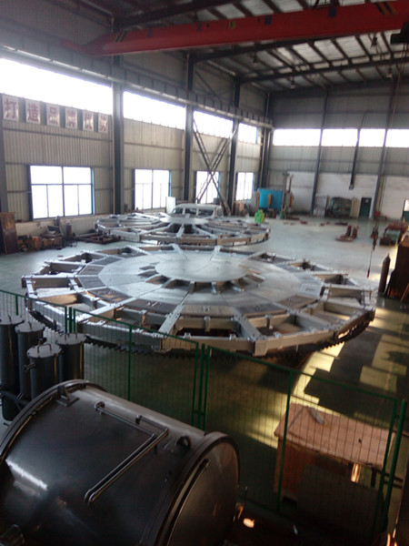 近期,我公司與與遼寧營口盛海化工有限公司簽訂一套全自動定量式圓盤澆鑄機制作安裝合同。該圓盤澆鑄機為16模雙圓盤結構,采用鉤取方式取板。目前,該設備已經(jīng)在公司內部完成加工和組裝工作。