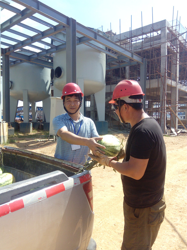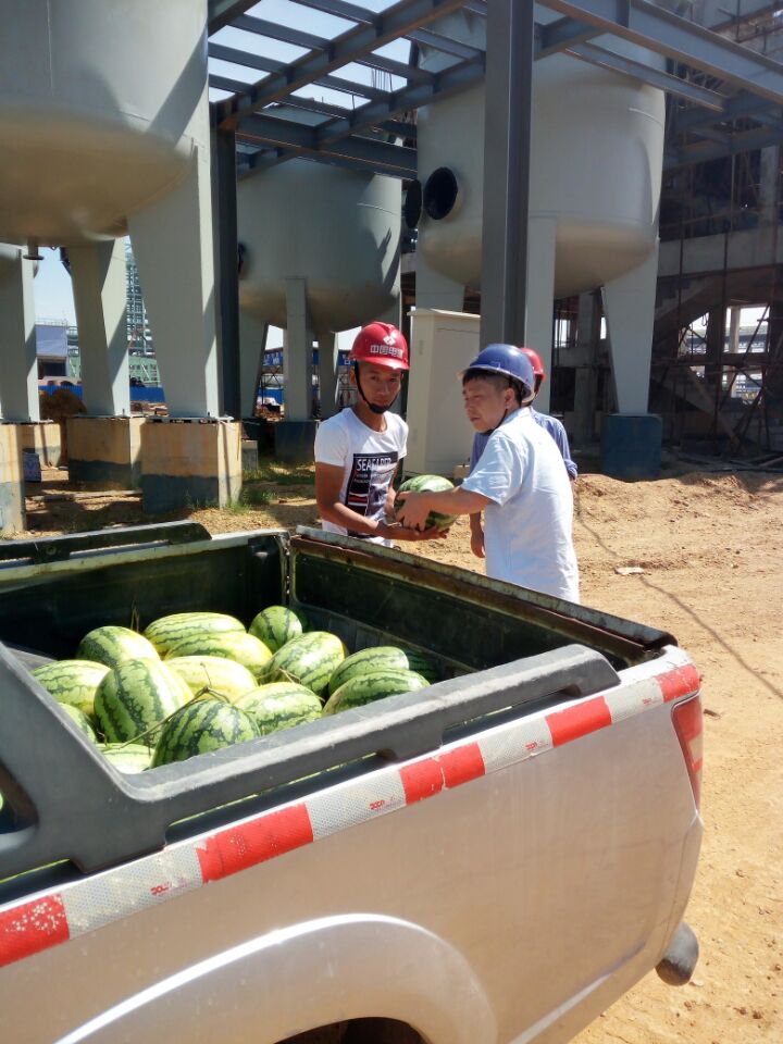 圖為7月18日,公司購(gòu)買一批西瓜送到工地,相關(guān)部門負(fù)責(zé)人為野外作業(yè)人員送去一片清涼。